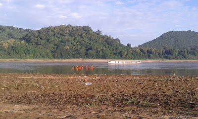 Im Morgengrauen schon füllen sich die sauber gefegten Gehsteige mit Leben. Mönche, in ihren traditionellen orangenen Gewändern und den Almosenschaalen um die Schultern gehängt, kommen in langen Reihen aus den vielen Tempeln der Stadt. Gläubige haben schon vor Morgengrauen Reis in kleinen Bambusschalen vom Markt geholt, und knien (Frauen), oder stehen (Männer) entlang des Bürgersteiges, an dem die Mönche vorbeigehen. Sie nehmen die Gaben wortlos an, auch den Dankesgruss des Gebenden, der mit zusammengelegten Händen vor der Stirn den Kopf tief neigt. Auch die meist jungen Mönche halten die Köpfe gesenkt, sichtlich peinlich berührt von der Masse an Chinesischen, Europäischen und Amerikanischen Kameraobjektiven die ihre tägliche Rutine in Bilder zu fangen versuchen, als wäre es ein einmaliges Naturereigniss.